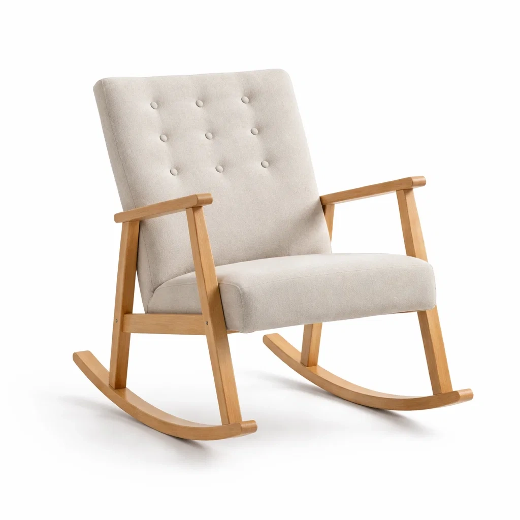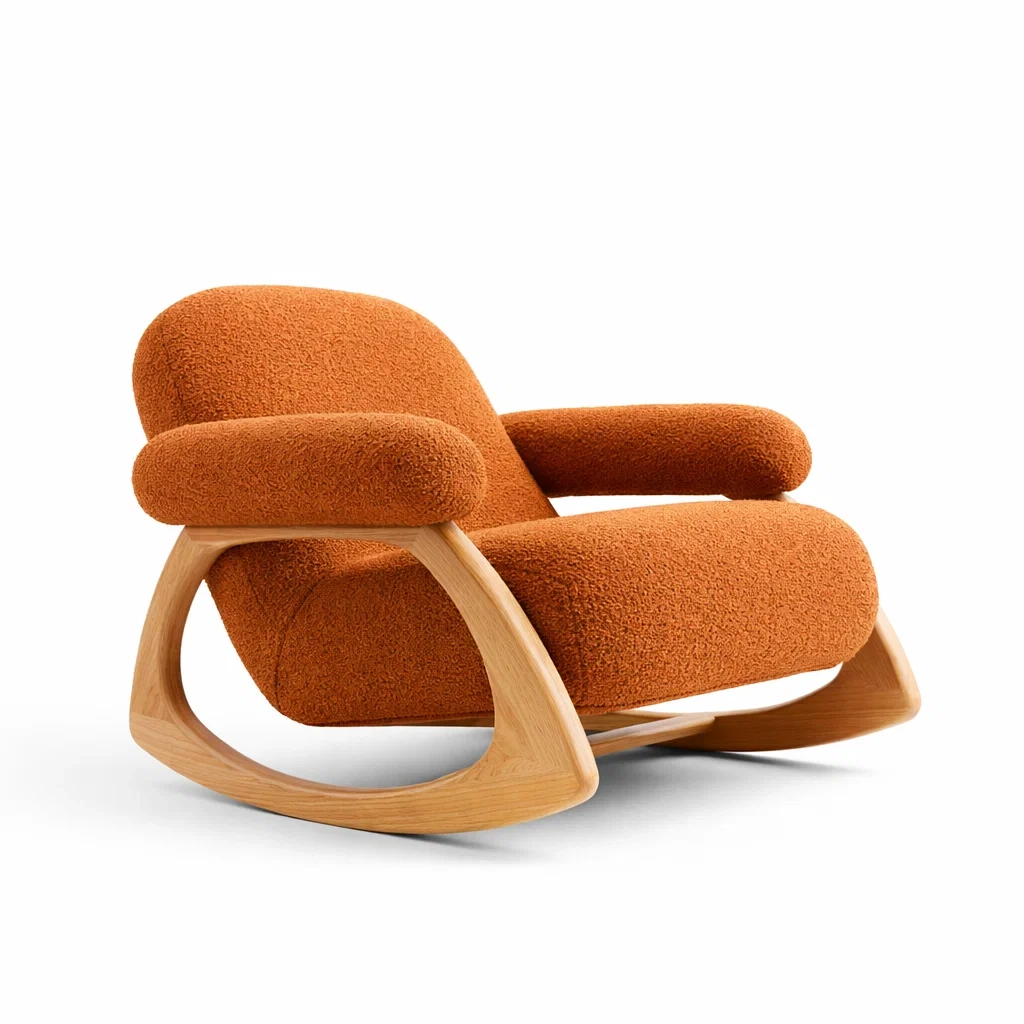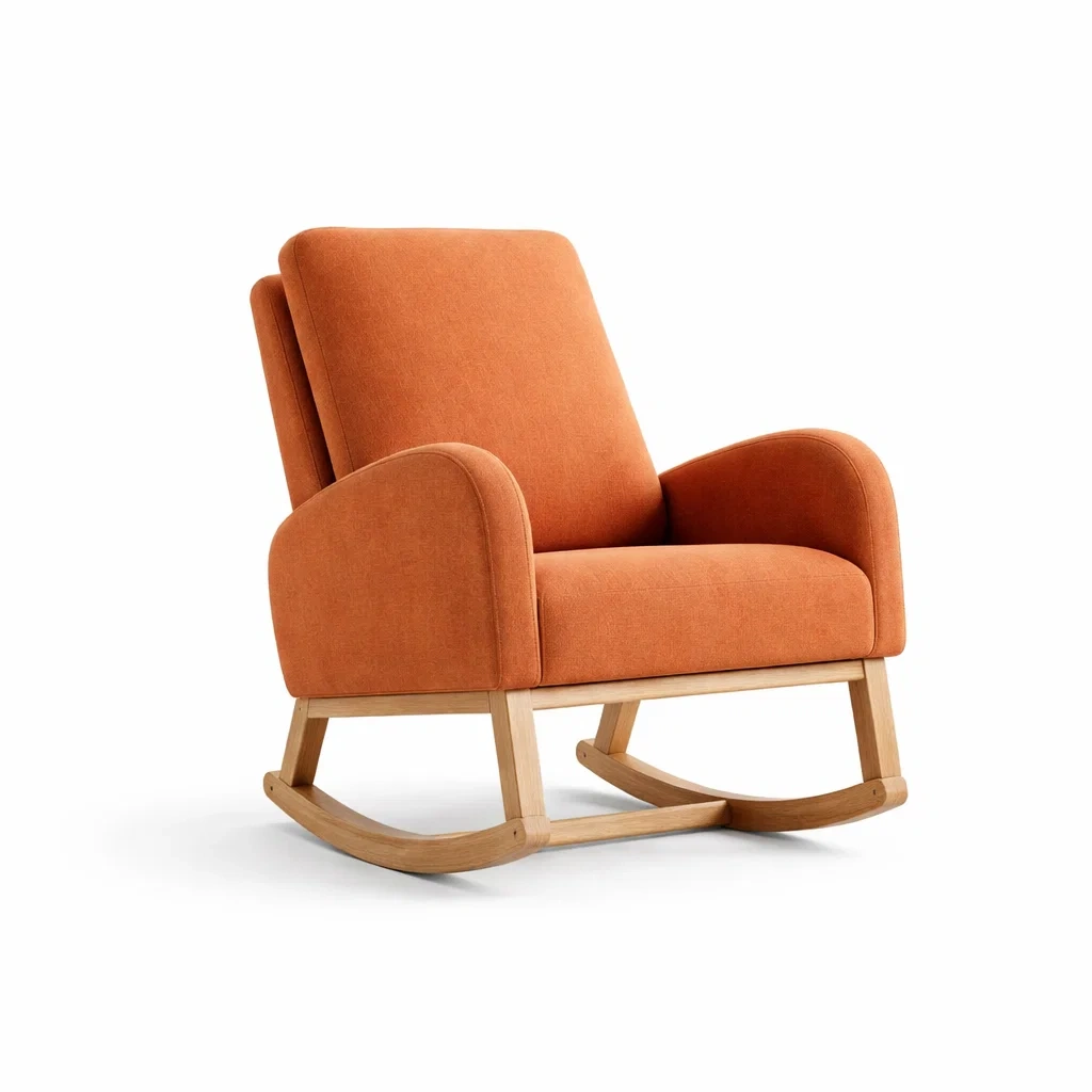 Schaukelstuhl aus polyesterstoff und eiche orange