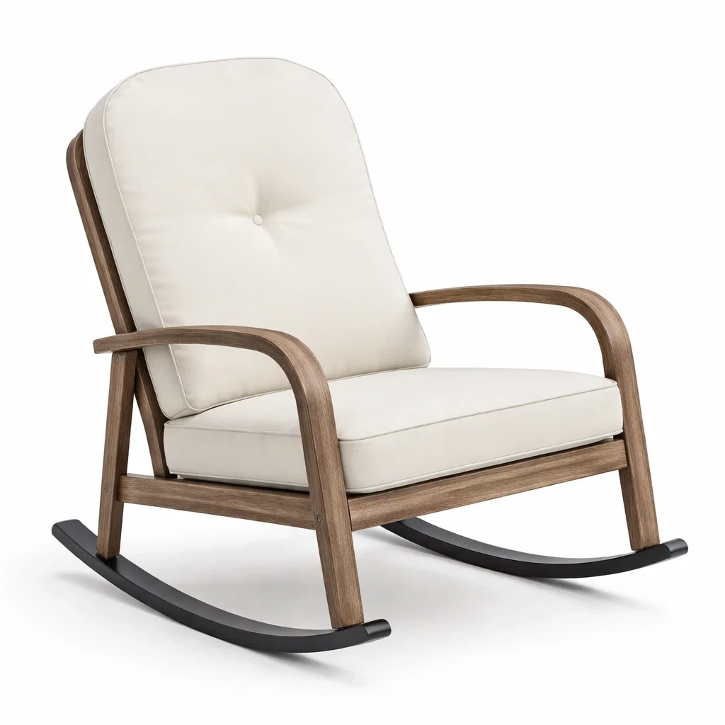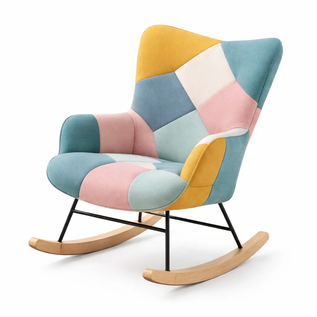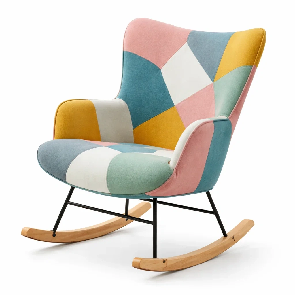 Schaukelstuhl patchwork mit holz und metallrahmen
