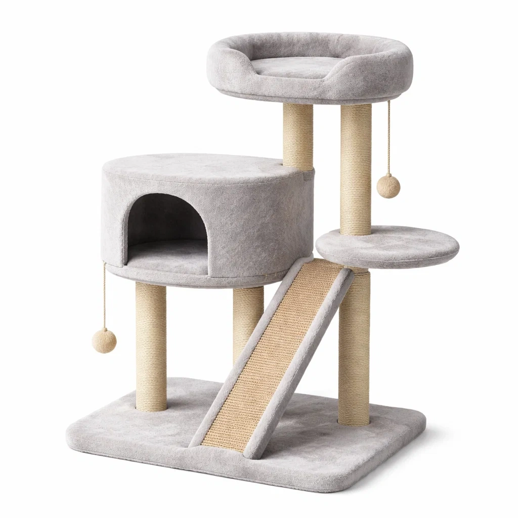 Kratzbaum grau aus mdf mit plüsch und sisalbezug